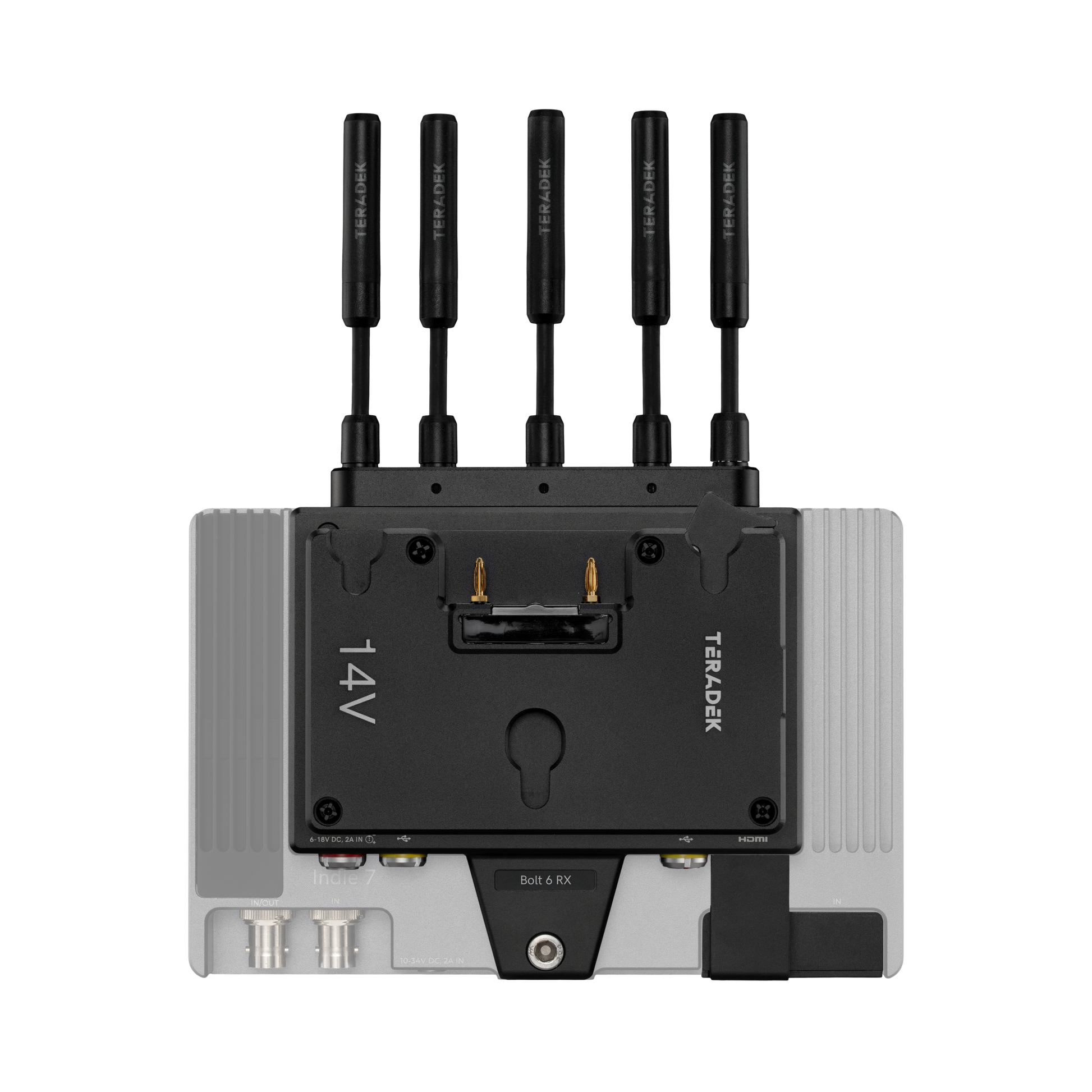The Bolt 6 Receiver Monitor Module easily attaches to the back of SmallHD’s Cine 7, 702 Touch, and Indie 7 Smart Monitors. With direct integration, the Bolt 6 and Smart monitor are able to share power and video, allowing you to reduce the amount of cables on set.